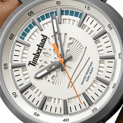 Este relógio Timberland tem uma caixa de Inox com um diâmetro de 44 mm e está equipado com uma bracelete de couro. A caixa possui um movimento Seiko Instruments Inc. e o relógio tem um vidro Mineral.