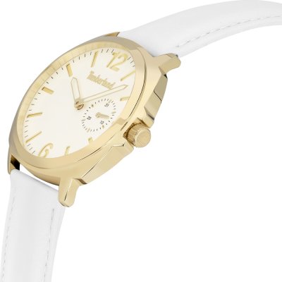 Este relógio Timberland tem uma caixa de Inox com um diâmetro de 38 mm e está equipado com uma bracelete de couro.