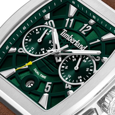 Este relógio Timberland tem uma caixa de Inox com um diâmetro de 40 mm e está equipado com uma bracelete de couro. A caixa possui um movimento Seiko Instruments Inc. e o relógio tem um vidro Mineral.