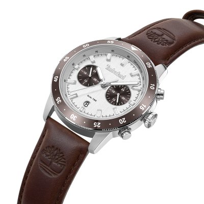 Este relógio Timberland tem uma caixa de Inox com um diâmetro de 44 mm e está equipado com uma bracelete de couro. A caixa possui um movimento Seiko Instruments Inc. e o relógio tem um vidro Mineral.