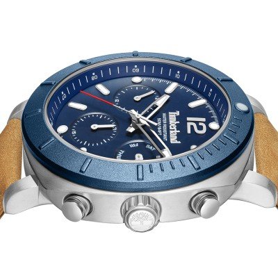 Este relógio Timberland tem uma caixa de Inox com um diâmetro de 46 mm e está equipado com uma bracelete de couro. A caixa possui um movimento Seiko Instruments Inc. e o relógio tem um vidro Mineral.
