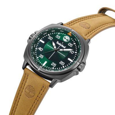 Este relógio Timberland tem uma caixa de Liga de Metal com um diâmetro de 48 mm e está equipado com uma bracelete de couro. A caixa possui um movimento Seiko e o relógio tem um vidro Mineral.