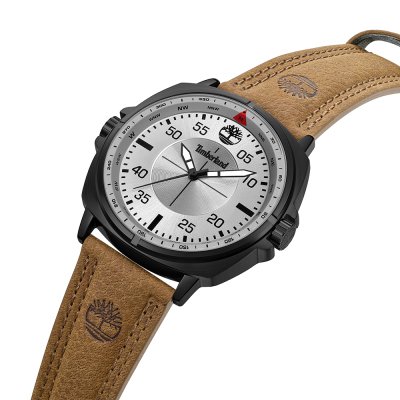 Este relógio Timberland tem uma caixa de Liga de Metal com um diâmetro de 48 mm e está equipado com uma bracelete de couro. A caixa possui um movimento Seiko e o relógio tem um vidro Mineral.