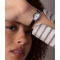 Este relógio Timex tem uma caixa de Liga de Metal com um diâmetro de 19 mm e está equipado com uma bracelete de couro. A caixa possui um movimento Timex e o relógio tem um vidro Mineral.