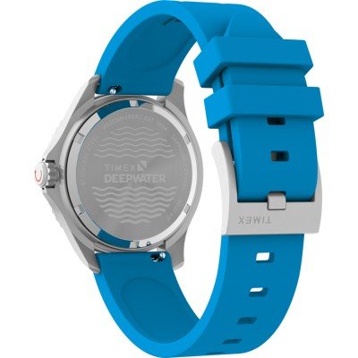 Este relógio Timex tem uma caixa de Inox com um diâmetro de 38 mm e está equipado com uma bracelete de borracha. A caixa possui um movimento Timex e o relógio tem um vidro Safira.