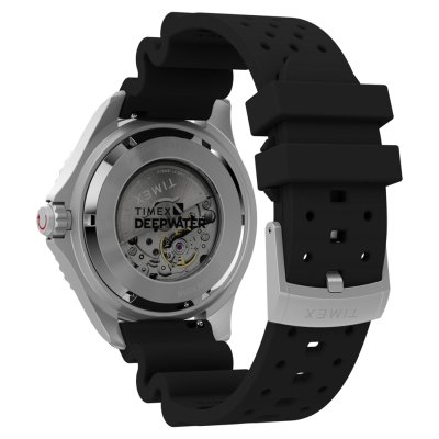 Este relógio Timex tem uma caixa de Inox com um diâmetro de 44 mm e está equipado com uma bracelete de borracha. A caixa possui um movimento Timex e o relógio tem um vidro Safira anti-reflexo única.