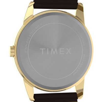 Este relógio Timex tem uma caixa de Liga de Metal com um diâmetro de 38 mm e está equipado com uma bracelete de couro. A caixa possui um movimento Timex e o relógio tem um vidro Mineral.