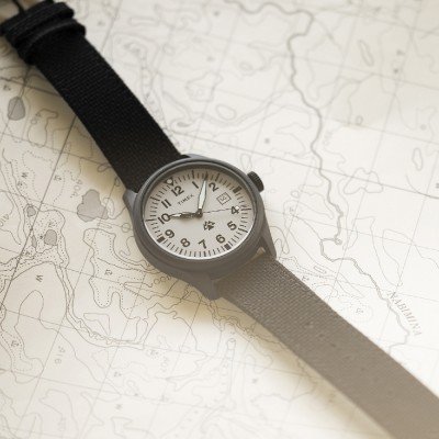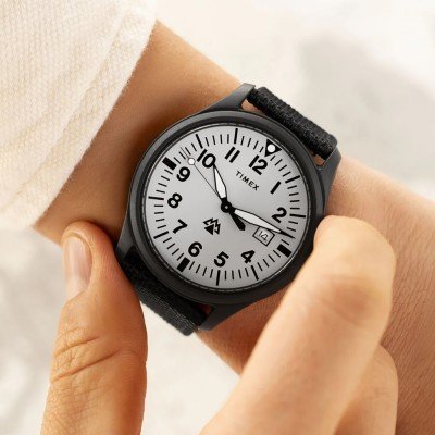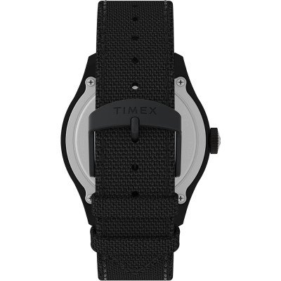 Este relógio Timex tem uma caixa de Biocerâmica com um diâmetro de 43 mm e está equipado com uma bracelete de Tecido de plástico reciclado. A caixa possui um movimento Timex e o relógio tem um vidro Mineral.