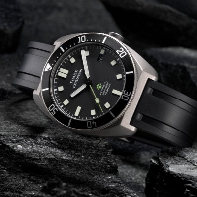 Este relógio Timex tem uma caixa de Titânio com um diâmetro de 41 mm e está equipado com uma bracelete de Plástico de origem biológica. A caixa possui um movimento Timex e o relógio tem um vidro Safira.