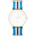 Esta bracelete de relógio Timex é feita de tecido e está fixada ao relógio através de pinos de pressão. A bracelete tem uma largura de 20 mm e fecha através de fecho. A bracelete tem uma montagem a direito, o que significa que esta bracelete é adequada para todos os relógios Timex com montagem da bracelete a direito.