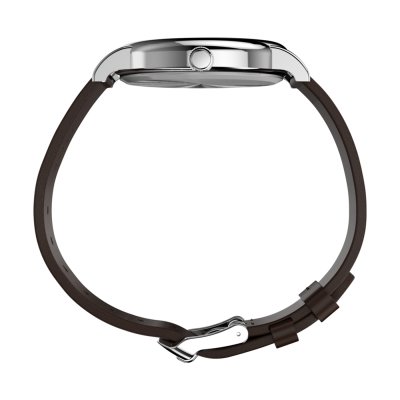 Este relógio Timex tem uma caixa de Liga de Metal com um diâmetro de 38 mm e está equipado com uma bracelete de couro. A caixa possui um movimento Timex e o relógio tem um vidro Mineral.