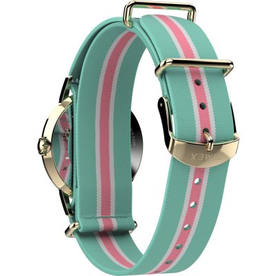 Este relógio Timex tem uma caixa de Inox com um diâmetro de 34 mm e está equipado com uma bracelete de Tecido. A caixa possui um movimento Timex e o relógio tem um vidro Acrílico.