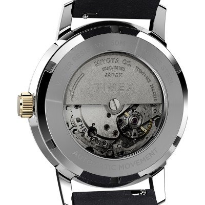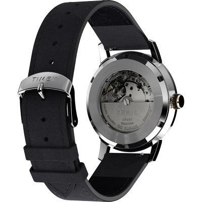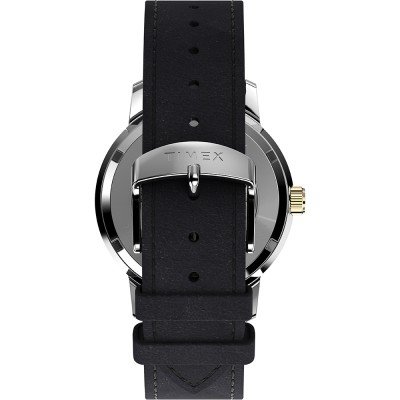 Este relógio Timex tem uma caixa de Inox com um diâmetro de 40 mm e está equipado com uma bracelete de couro. A caixa possui um movimento Timex e o relógio tem um vidro Acrílico.