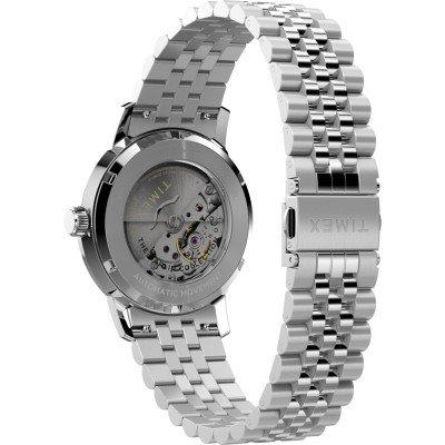 Este relógio Timex tem uma caixa de Inox com um diâmetro de 40 mm e está equipado com uma bracelete de Inox. A caixa possui um movimento Timex e o relógio tem um vidro Acrílico.