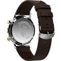 Este relógio Timex tem uma caixa de Inox com um diâmetro de 40 mm e está equipado com uma bracelete de couro. A caixa possui um movimento Timex e o relógio tem um vidro Acrílico.