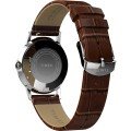 Este relógio Timex tem uma caixa de Inox com um diâmetro de 34 mm e está equipado com uma bracelete de couro. A caixa possui um movimento Timex e o relógio tem um vidro Acrílico.