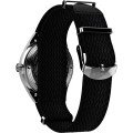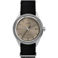 Este relógio Timex tem uma caixa de Inox com um diâmetro de 38 mm e está equipado com uma bracelete de Tecido. A caixa possui um movimento Timex e o relógio tem um vidro Hesalite.