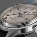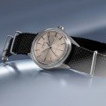 Este relógio da super-popular série Marlin Jet tem um bonito e subtil mostrador raiado em tom de areia e é usado numa bracelete Perlon NATO macia e flexível.