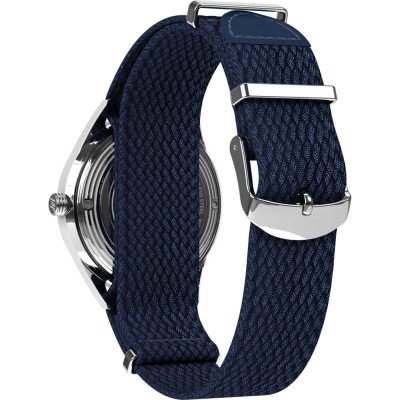 Este relógio Timex tem uma caixa de Inox com um diâmetro de 38 mm e está equipado com uma bracelete de Tecido. A caixa possui um movimento Timex e o relógio tem um vidro Acrílico.