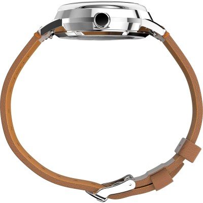 Este relógio Timex tem uma caixa de Inox com um diâmetro de 40 mm e está equipado com uma bracelete de couro. A caixa possui um movimento Timex e o relógio tem um vidro Acrílico.