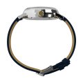 Este relógio Timex tem uma caixa de Inox com um diâmetro de 40 mm e está equipado com uma bracelete de couro. A caixa possui um movimento Timex e o relógio tem um vidro Acrílico.