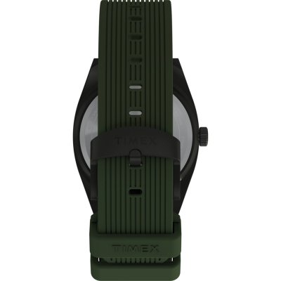Este relógio Timex tem uma caixa de Liga de Metal com um diâmetro de 39 mm e está equipado com uma bracelete de borracha. A caixa possui um movimento Timex e o relógio tem um vidro Mineral.