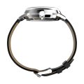 Este relógio Timex tem uma caixa de Inox com um diâmetro de 40 mm e está equipado com uma bracelete de couro. A caixa possui um movimento Timex e o relógio tem um vidro Acrílico.