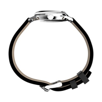 Este relógio Timex tem uma caixa de Inox com um diâmetro de 38 mm e está equipado com uma bracelete de couro. A caixa possui um movimento Timex e o relógio tem um vidro Acrílico.
