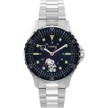 Este relógio Timex tem uma caixa de Inox com um diâmetro de 41 mm e está equipado com uma bracelete de Inox. A caixa possui um movimento Timex e o relógio tem um vidro Mineral.