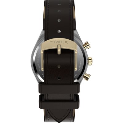 Este relógio Timex tem uma caixa de Inox com um diâmetro de 40 mm e está equipado com uma bracelete de couro. A caixa possui um movimento Timex e o relógio tem um vidro Mineral.