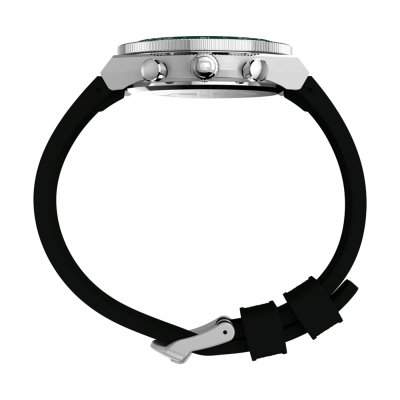 Este relógio Timex tem uma caixa de Inox com um diâmetro de 40 mm e está equipado com uma bracelete de borracha. A caixa possui um movimento Timex e o relógio tem um vidro Mineral.