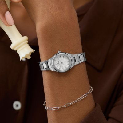 Este relógio Timex tem uma caixa de Inox com um diâmetro de 24 mm e está equipado com uma bracelete de Inox. A caixa possui um movimento Timex e o relógio tem um vidro Mineral.