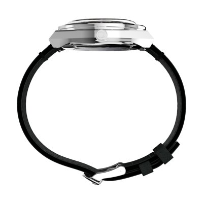 Este relógio Timex tem uma caixa de Inox com um diâmetro de 40 mm e está equipado com uma bracelete de couro. A caixa possui um movimento Timex e o relógio tem um vidro Acrílico.