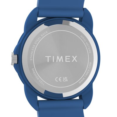 Este relógio Timex tem uma caixa de Resina com um diâmetro de 30 mm e está equipado com uma bracelete de borracha. A caixa possui um movimento Timex e o relógio tem um vidro Acrílico.