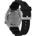 Este relógio Timex tem uma caixa de Inox com um diâmetro de 46 mm e está equipado com uma bracelete de borracha. A caixa possui um movimento Timex e o relógio tem um vidro Mineral.