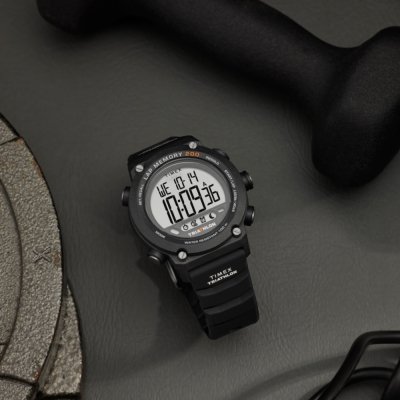 Este relógio Timex tem uma caixa de Resina com um diâmetro de 44 mm e está equipado com uma bracelete de borracha. A caixa possui um movimento Timex e o relógio tem um vidro Acrílico.
