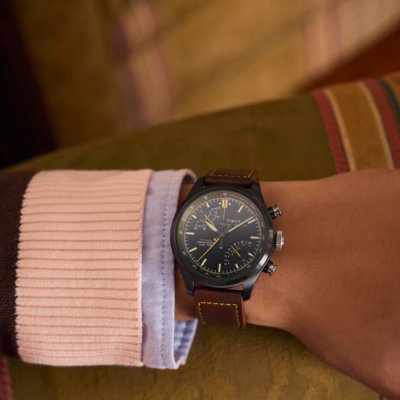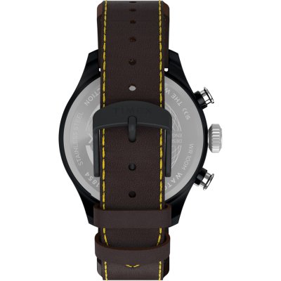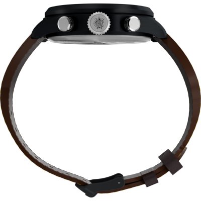 Este relógio Timex tem uma caixa de Inox com um diâmetro de 43 mm e está equipado com uma bracelete de couro. A caixa possui um movimento Timex e o relógio tem um vidro Mineral.