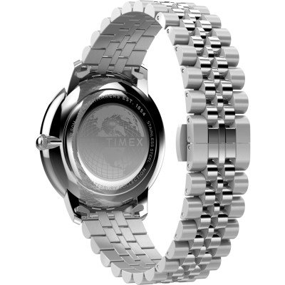 Este relógio Timex tem uma caixa de Inox com um diâmetro de 39 mm e está equipado com uma bracelete de Inox. A caixa possui um movimento Timex e o relógio tem um vidro Mineral.