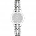 Esta bracelete de relógio Tissot é feita de aço inoxidável e está fixada ao relógio através de pinos de pressão. A bracelete tem uma largura de 14 mm e fecha através de fivela dobrável com botões de pressão. A bracelete não tem uma montagem a direito, o que significa que esta bracelete só é adequada para os relógios listados abaixo.