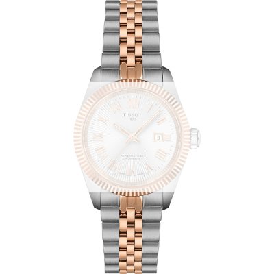 Esta bracelete de relógio Tissot é feita de aço inoxidável e está fixada ao relógio através de pinos de pressão. A bracelete tem uma largura de 16 mm e fecha através de fivela butterfly com botões de pressão. A bracelete tem uma montagem a direito, o que significa que esta bracelete é adequada para todos os relógios Tissot com montagem da bracelete a direito.