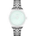 Esta bracelete de relógio Tissot é feita de aço inoxidável e está fixada ao relógio através de pinos de pressão. A bracelete tem uma largura de 16 mm e fecha através de fivela butterfly com botões de pressão. A bracelete não tem uma montagem a direito, o que significa que esta bracelete só é adequada para os relógios listados abaixo.