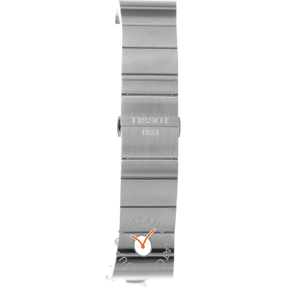 Esta bracelete de relógio Tissot é feita de aço inoxidável e está fixada ao relógio através de pinos de pressão. A bracelete tem uma largura de 25 mm e fecha através de fivela butterfly com botões de pressão. A bracelete não tem uma montagem a direito, o que significa que esta bracelete só é adequada para os relógios listados abaixo.