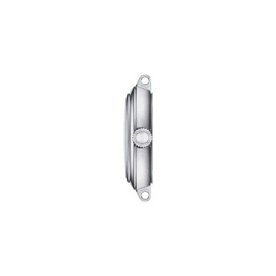 Este relógio Tissot tem uma caixa de Inox com um diâmetro de 26 mm e está equipado com uma bracelete de Inox. A caixa possui um movimento ETA e o relógio tem um vidro Safira.