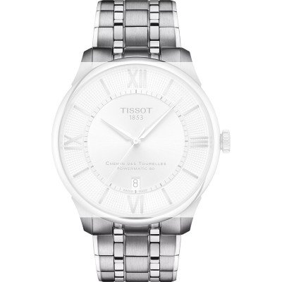Esta bracelete de relógio Tissot é feita de aço inoxidável e está fixada ao relógio através de pinos de pressão. A bracelete tem uma largura de 22 mm e fecha através de fivela dobrável com botões de pressão. A bracelete não tem uma montagem a direito, o que significa que esta bracelete só é adequada para os relógios listados abaixo.