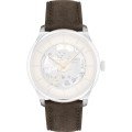 Este relógio esqueleto Tissot Chemin Des Tourelles, com um belo design, brilha nos pormenores, justapondo elementos de estilo moderno e clássico. As indicações das horas são algarismos romanos colocados num tipo de letra sans serif mais moderno sobre uma faixa subtilmente guilhochada que circunda um trajeto dos minutos impresso. Toda a atenção é atraída para o movimento automático Powermatic 80, que é visível tanto no mostrador como no fundo de caixa. Os ponteiros clássicos em forma de espada são funcionais, mas subtis, acrescentando mais uma camada a este relógio de grande beleza.