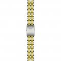 Esta bracelete de relógio Tissot é feita de aço inoxidável e está fixada ao relógio através de pinos de pressão. A bracelete tem uma largura de 19 mm e fecha através de fivela dobrável com botões de pressão. A bracelete não tem uma montagem a direito, o que significa que esta bracelete só é adequada para os relógios listados abaixo.