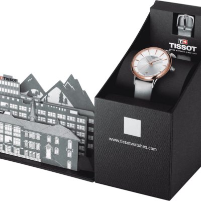 Este relógio Tissot tem uma caixa de Inox com um diâmetro de 33 mm e está equipado com uma bracelete de couro. A caixa possui um movimento ETA e o relógio tem um vidro Safira.