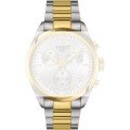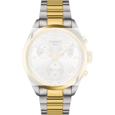 Esta bracelete de relógio Tissot é feita de aço inoxidável e está fixada ao relógio através de pinos carregados por mola de liberação rápida. A bracelete tem uma largura de 20 mm e fecha através de fivela butterfly com botões de pressão. A bracelete não tem uma montagem a direito, o que significa que esta bracelete só é adequada para os relógios listados abaixo.