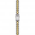 Esta bracelete de relógio Tissot é feita de aço inoxidável e está fixada ao relógio através de pinos de pressão. A bracelete tem uma largura de 12 mm e fecha através de fivela dobrável com botões de pressão. A bracelete não tem uma montagem a direito, o que significa que esta bracelete só é adequada para os relógios listados abaixo.
