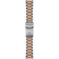 Esta bracelete de relógio Tissot é feita de aço inoxidável e está fixada ao relógio através de pinos carregados por mola de liberação rápida. A bracelete tem uma largura de 20 mm e fecha através de fivela dobrável com botões de pressão e segurança. A bracelete não tem uma montagem a direito, o que significa que esta bracelete só é adequada para os relógios listados abaixo.
